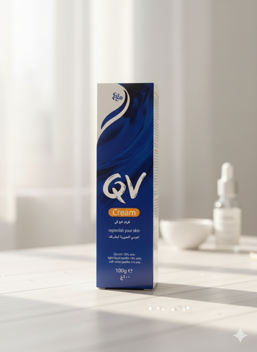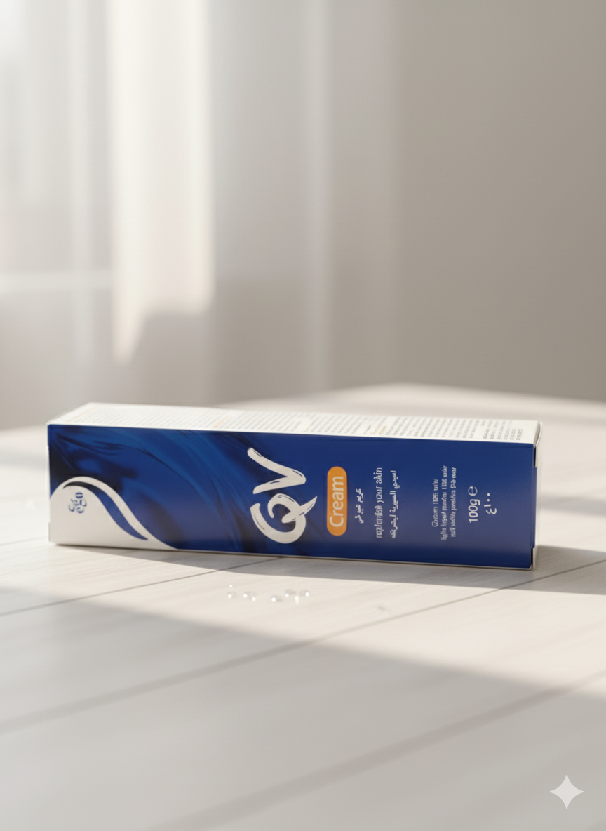 QV Cream is one of the most famous products for dry and sensitive skincare from the Australian company Ego, specifically designed to deeply moisturize the skin and restore its natural softness without leaving any greasy residue. It is considered the ideal solution for people suffering from chronic dryness, or inflammation resulting from cold weather or the use of harsh soap. The cream contains an advanced dermatological formula rich in highly effective moisturizing ingredients such as Glycerin, medical Petrolatum, and Liquid Paraffin, which work together to form a light protective layer over the skin that locks in moisture and protects it from natural water loss. It is also free from fragrances, artificial colors, and soap, making it perfectly suitable for sensitive skin and for daily use, even for children. QV Cream is characterized by its rich yet light texture on the skin, as it is quickly absorbed without leaving a sticky or oily feel, making it ideal for use at all times—whether after showering, before bed, or when feeling dryness in any area of the body.